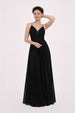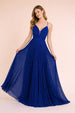 Robes de soirée longue plissée scintillante fines bretelles décolleté V avec tulle dos croisé et taille marquée | Dressie Dress