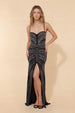 Women's Ultra-Sparkly Crystal Maxi Dress - Sweetheart Neckline, Strapless Design, Thin Straps - Bodycon Fit and Front Slit | Dressie Dress