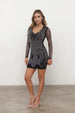 Cette Robe cristalline / brillante présente une coupe mini moulante à manches longues et encolure en V....